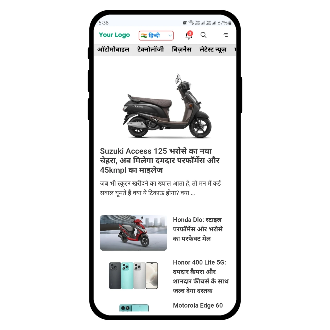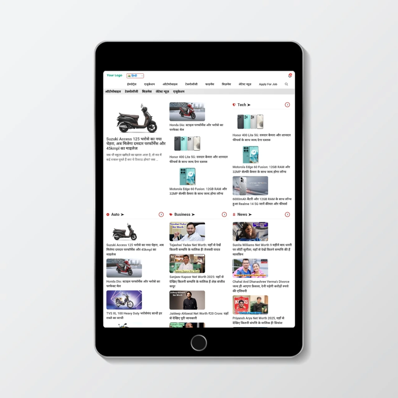 - Category Sections: Education, Bollywood, Business, Tech, Automobile, Schemes